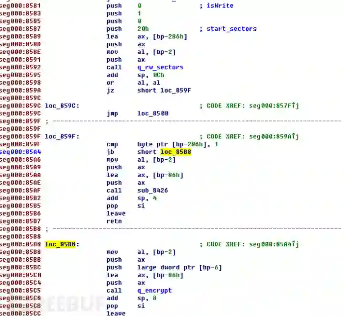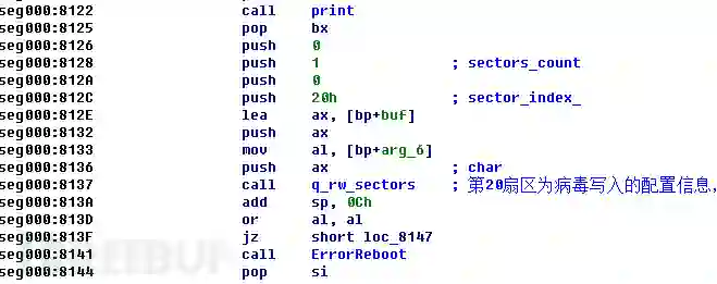 l 加密流程,读取病毒配置信息, 病毒加密用的key存在第0x20个扇区