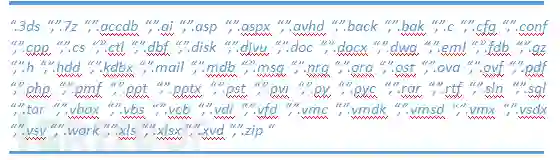 根据后缀名对相关文件进行分类,涉及的文件格式如下表: