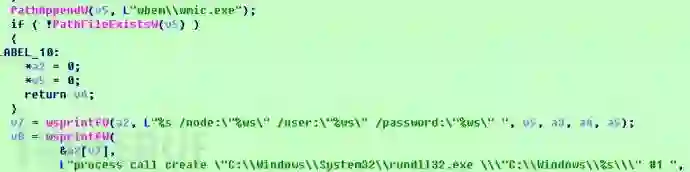 该命令将在目标主机上执行rundll32。exe调用自身dll的第1个导出函数,完成局域网感染功能。