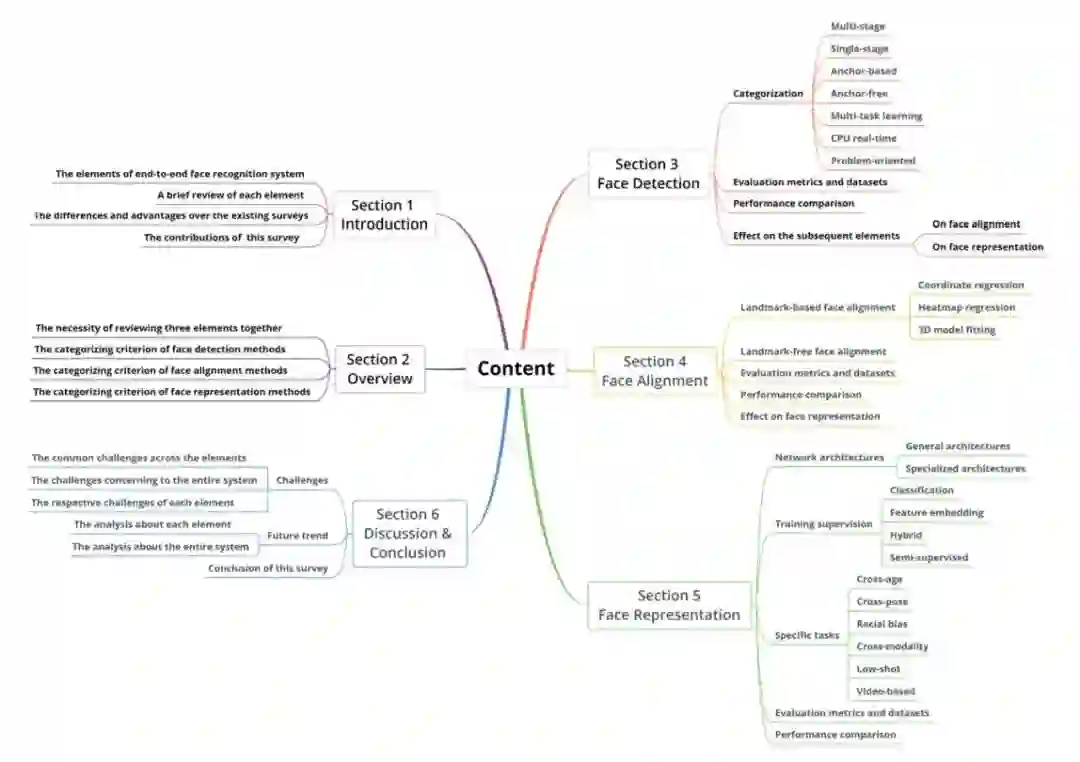 系统地调研并回顾了端到端深度人脸识别三个组成要素的最近进展;