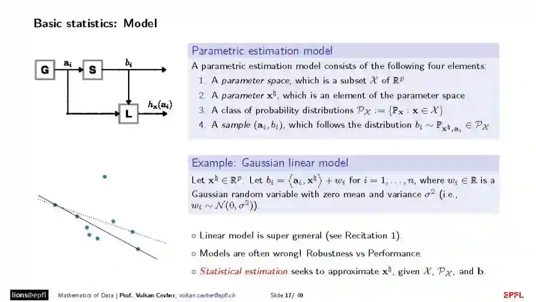 第一讲:绪论。模型和数据的作用。最大似然公式。估计和预测的样本复杂度界限。
