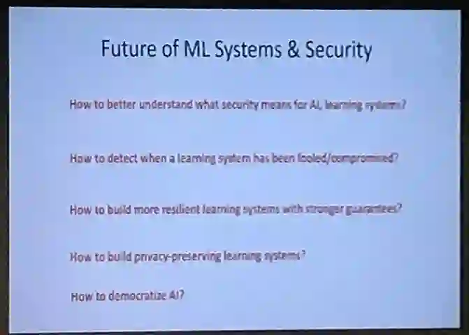 Dawn Song 教授的「人工智能与安全:教训、挑战和未来研究方向」的大会报告主要有以下几个关键的论点: