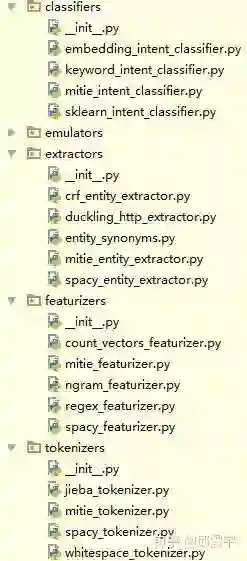首先,看一下rasa框架的代码结构。如图所示: