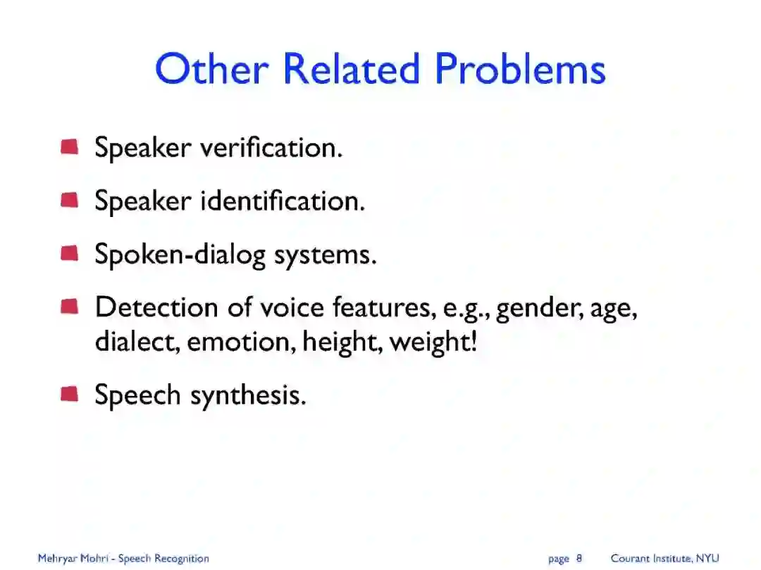 目前在自然语言处理、计算生物学和机器学习的其他应用领域中使用的许多学习和搜索算法和技术,最初都是为解决语音识别问题而设计的。语音识别继续给计算机科学带来挑战性的问题,特别是因为它产生的学习和搜索问题的规模。