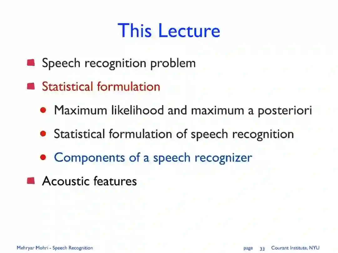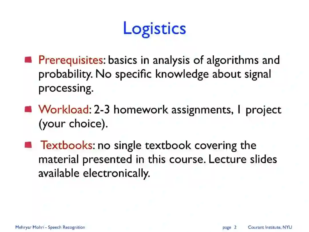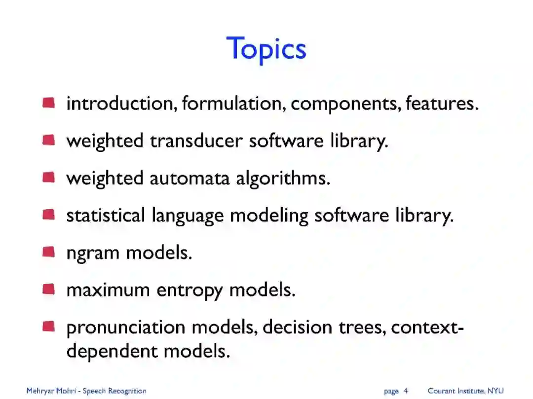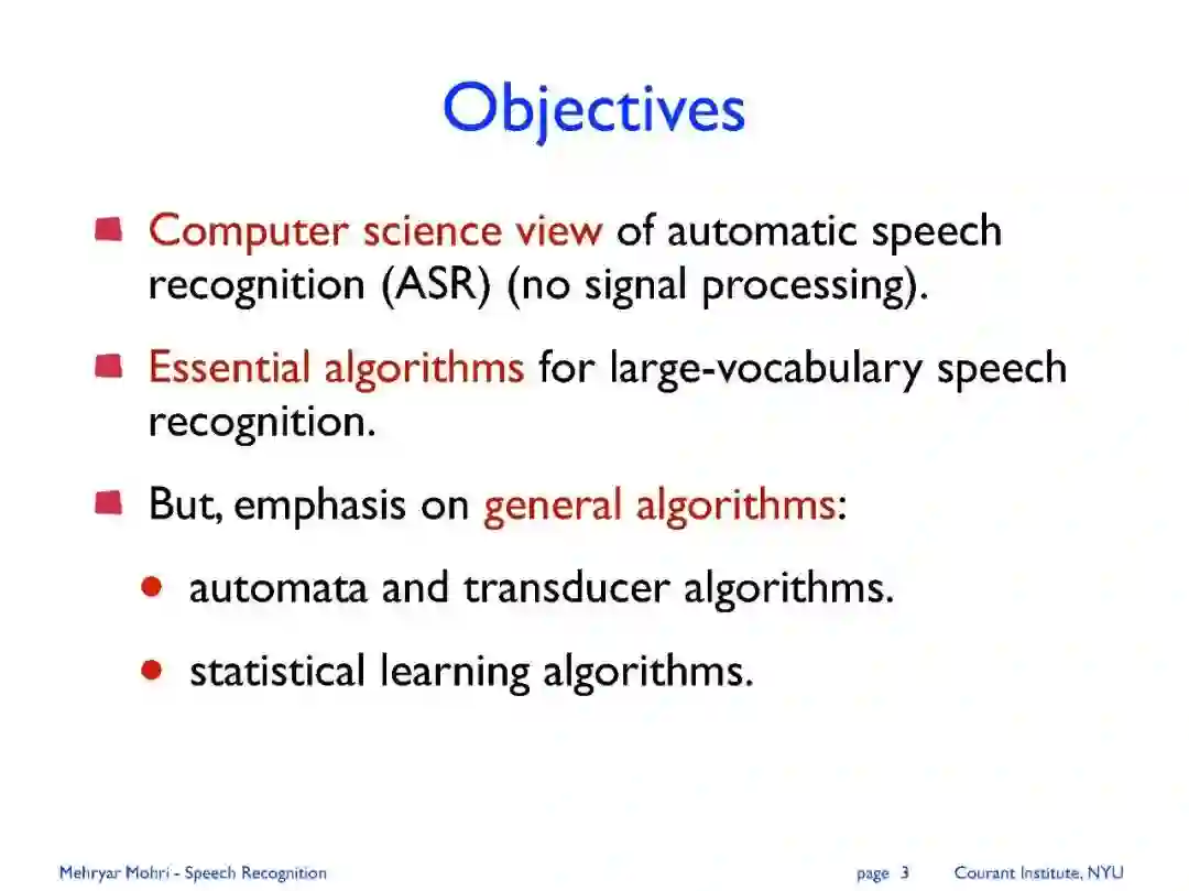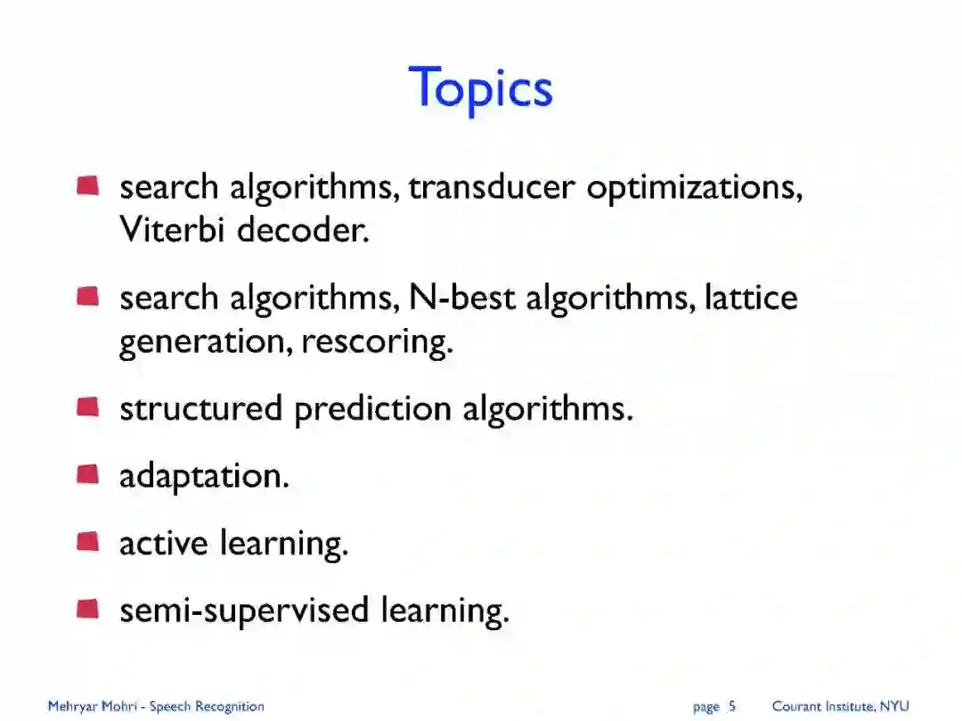 本课程以计算机科学的方式介绍自动语音识别,以及正确转录语音的问题。描述包括创建大规模语音识别系统的基本算法。所提出的算法和技术目前已在大多数研究和工业系统中得到应用。