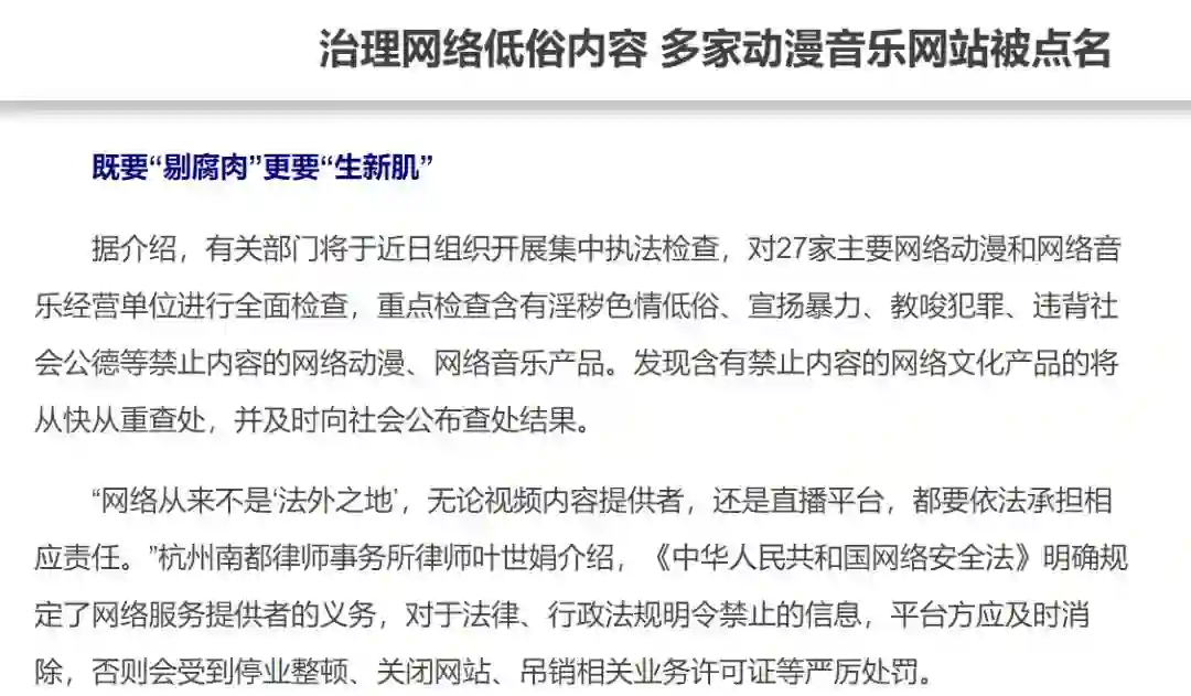 新华社评27家动漫音乐网站被点名:腐肉不剔,新肌难生