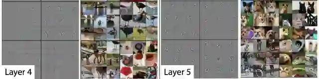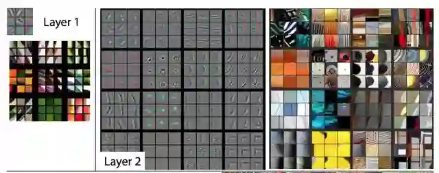 在本文中,Matt Zeiler使用了一个反卷积算子,以便可视化深度卷积结构的不同层次和深度的核在训练过程中得到调谐。普遍的共识是,在经过最优训练的卷积网络中,在边缘(接近图像)的滤波器对基本边缘和图案变得敏感。深层中的过滤器对逐渐升高的阶数形状和模式敏感。这些现象在Matt论文的图表中得到了很好的总结: