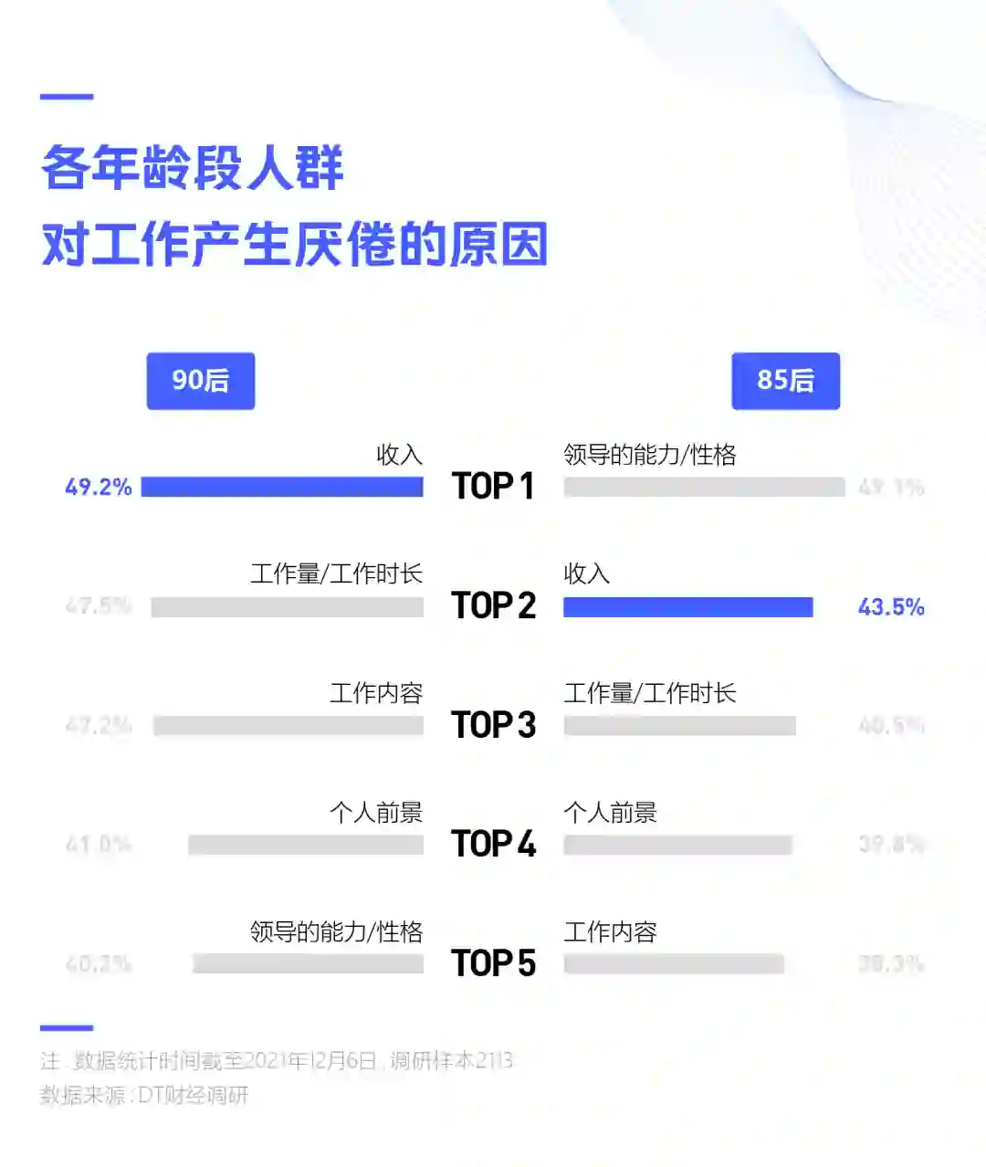 《2021年中国职场人士工作倦怠现状调查报告》里,1679名中国职场人士工作倦怠现状的一项调查中,有超过6成的被调查者表示,由于日常的工作要求,他们下班后感到精疲力竭,表现出中度情绪衰竭。