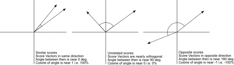 如果你不熟悉余弦相似度,这里我们简单温习下这一概念。余弦相似度测量两个向量的相似程度:基本上,它测量两个向量之间的夹角,如果两个向量方向正好相反,则返回-1,如果两个向量方向一致,则返回1。重要的是,它只测量向量的方向,而不考虑长度。