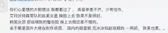 不过,与美国的广泛讨论不同,在中文互联网,尽管利用 DeepFake 作出的假视频也开始越来越多,但关于 DeepFake 的讨论还是更多地局限在那些小众论坛里。人们以一种猎奇的心态谈论着这些视频。比如这名用户,像点评普通电影一样点评着他看过的 DeepFake 视频。