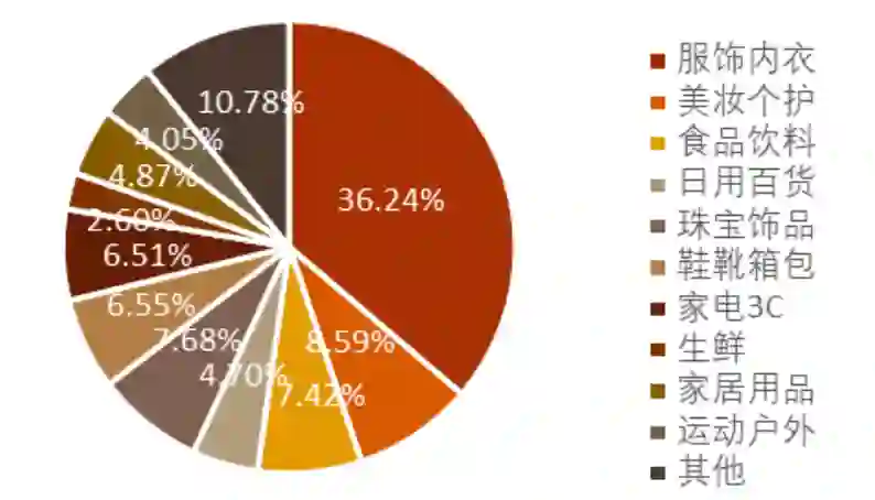 在直播电商改变“信息流”使信息的流通效率更高,成本更低之后,服饰、珠宝、食品饮料、美妆等能够在直播过程中产生更多话题和专业化的非标品类因此受益。