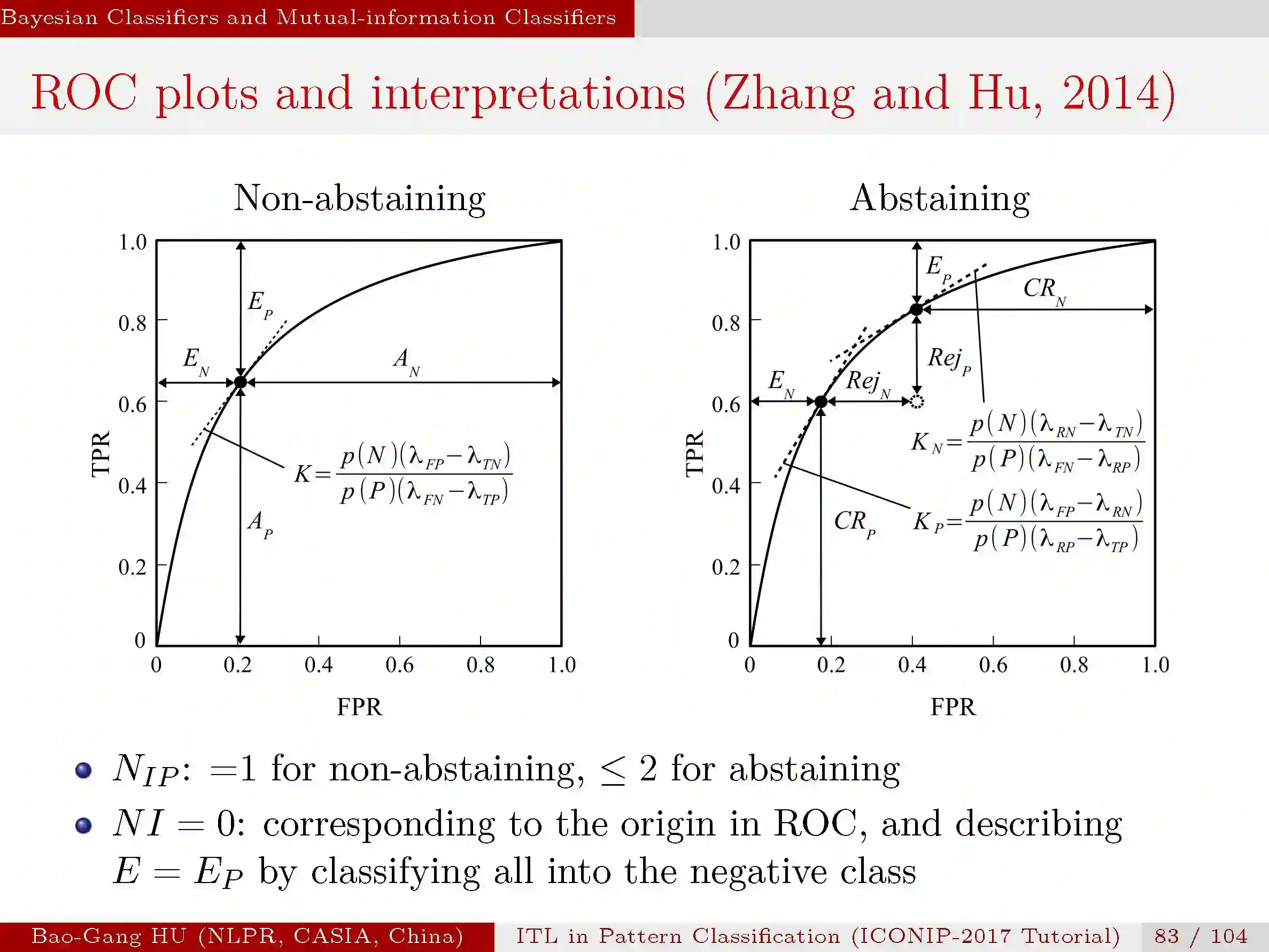 右图:为拒识类别下的ROC理论曲线。据我们所知,这是首次给出二维ROC表示下的拒识类别解释。过去有文献记录是增加一维来表示拒识类别。该二维ROC曲线对于理解误差,拒识与各个参数关联更为简洁而十分重要。要理解左图只是该图的特例。