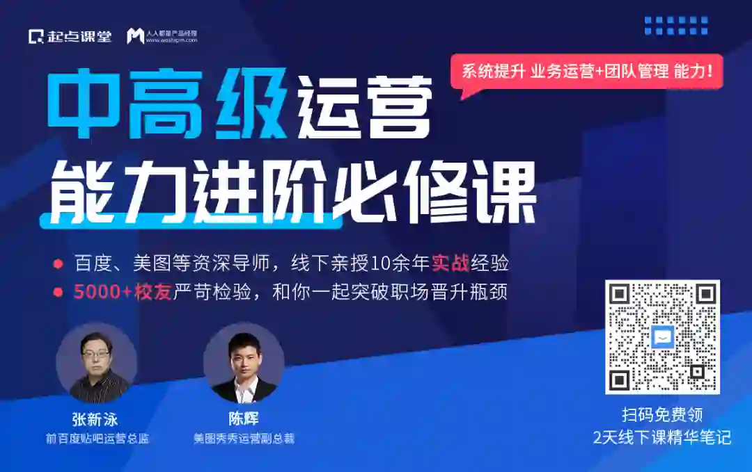 没有机会,那就自己创造机会!推荐「人人都是产品经理」旗下起点课堂的高阶运营课——《运营管理者进化营》,跟15年经验的大厂运营总监面对面系统学习2天!