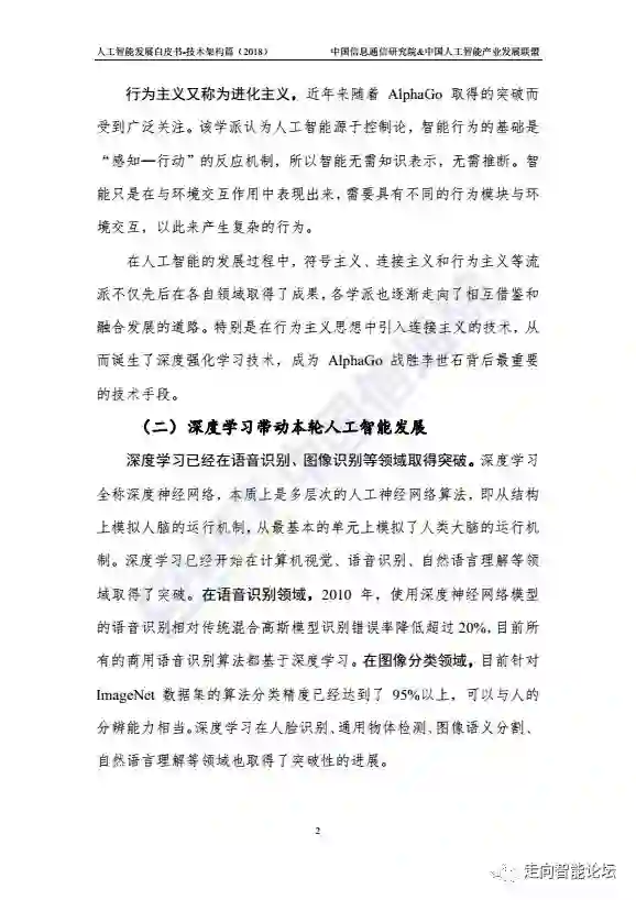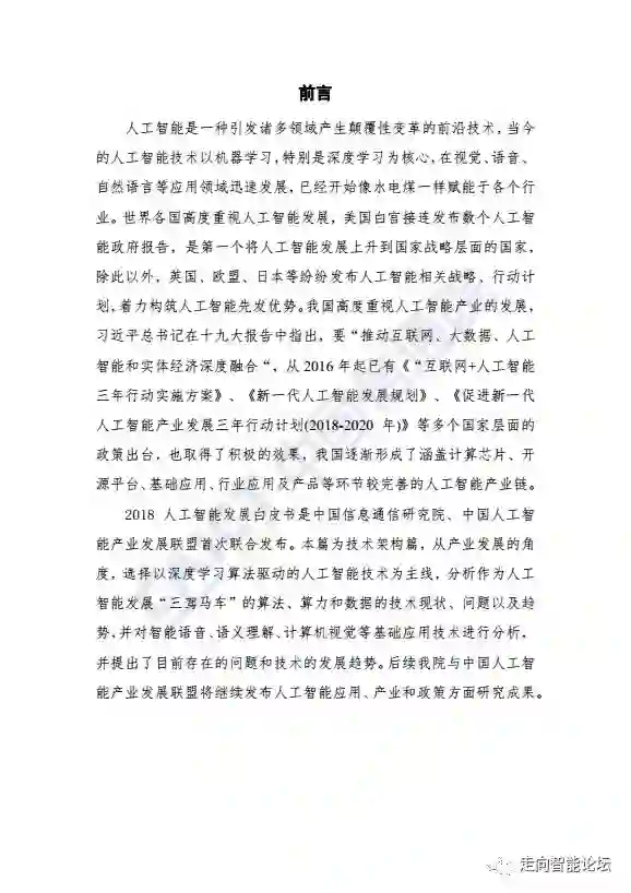 在“走向智能论坛”微信公众号回复“20180910”,可免费下载”《人工智能发展白皮书-技术架构篇(2018年)》“完整PDF
