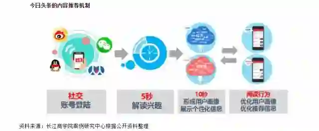 其具体做法是,自己不进行内容生产,而是积极整合技术优势,为内容提供稳定、高效的“出路”,即依托数据挖掘和个性化算法搭建起一个内容聚合与推荐平台,以用户需求和偏好为导向,通过为已有的资讯内容进行精准推送、个性化传播,实现利润转化。