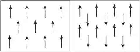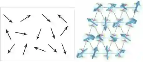 磁性材料的原子带有自旋,其可以用一个箭头来表示。低温下,这些自旋可以自发的排成有规则的阵列,从而得到一个自旋有序态。自旋都指同一方向的自旋有序态叫铁磁态。自旋上下交叉排列的叫反铁磁态。自旋有序态破坏了自旋旋转对称性,是一种对称破缺态。