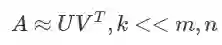 ALS 的核心假设是:打分矩阵A是近似低秩的,即一个m∗n的打分矩阵 A 可以用两个小矩阵U(m∗k)和V(n∗k)的乘积来近似: