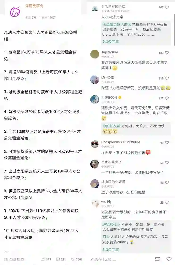 我就不参与吐槽了,找了一下其他城市的引才待遇。与通州相比,各准一线、二线城市对诺奖得主等高层次人才似乎慷慨很多。