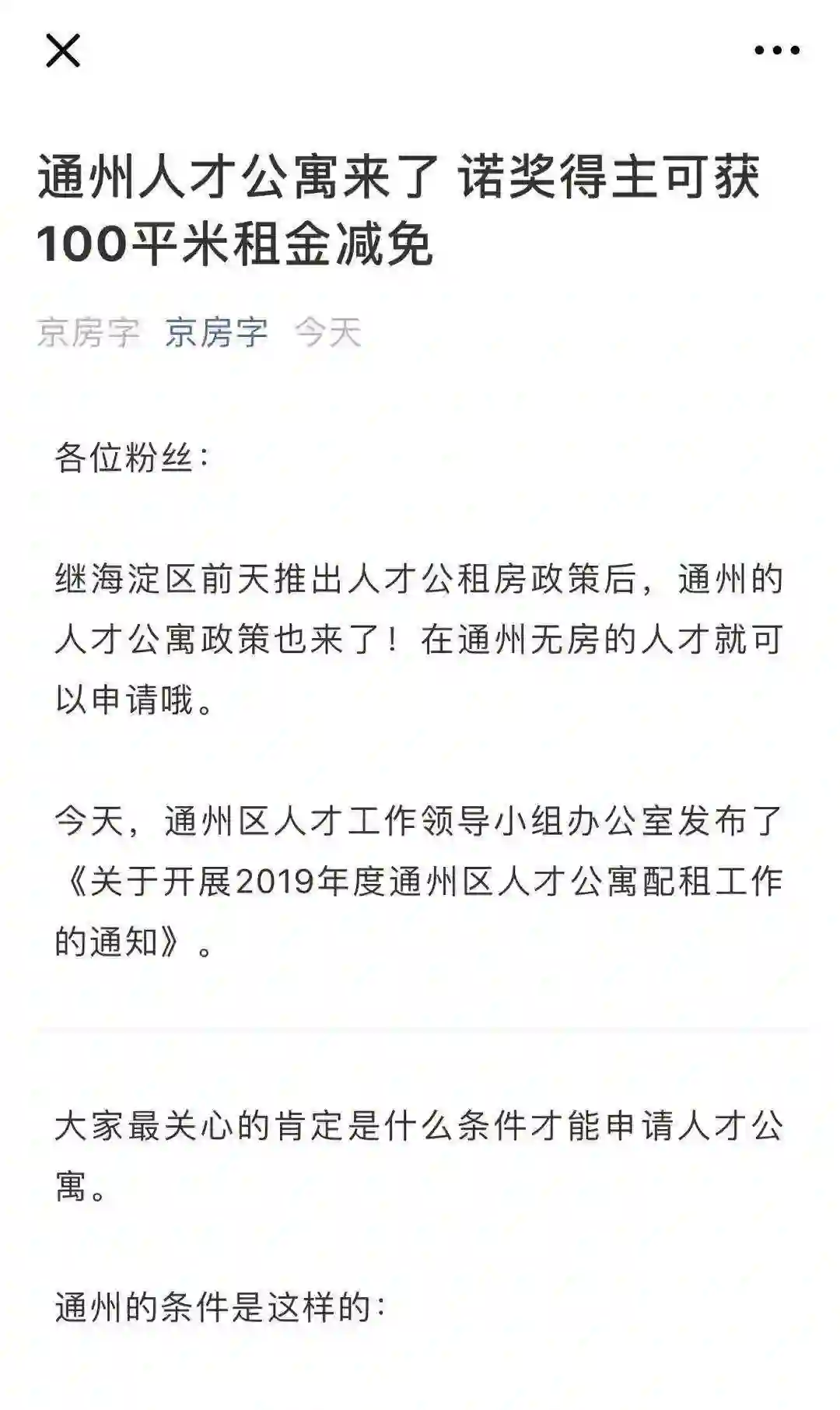 今天在通州区人民政府上面还真看到了人才公寓配租工作的通知。