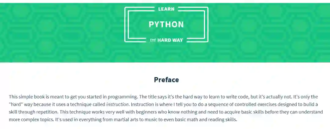 在 Python 的地界,有一本备受推崇的经典教材——Learn Python the Hard Way,有人将其亲切地翻译为《笨方法学 Python》。(在线阅览地址:https://learnpythonthehardway.org/python3/)