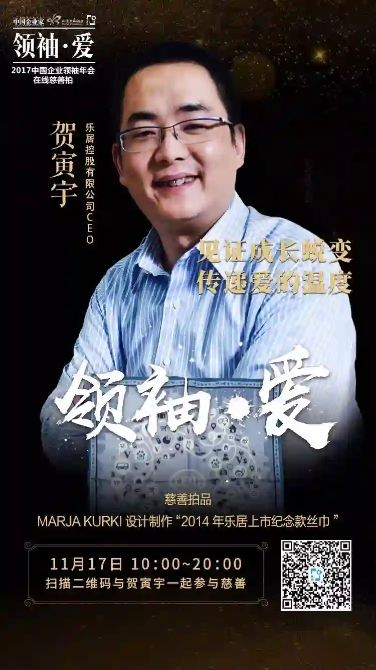 近日,由《中国企业家》杂志社主办的“领袖•爱”中国企业领袖年会在线慈善拍活动在库拍APP启动,乐居首席执行官贺寅宇送来了这条于他而言意义非凡的“丝巾”。