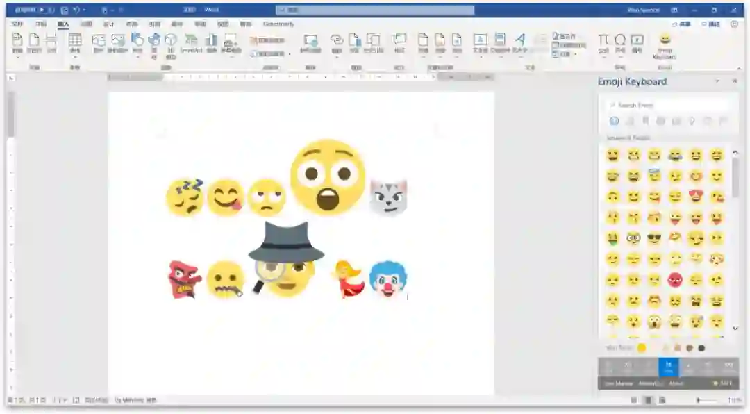 我们可以在 AppSource - Emoji Keyboard 处查看下载 Emoji Keyboard 这个 Word(也支持 PowerPoint)插件,在「加载项商店」也可以搜索直接下载。