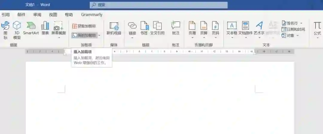 Word 本身自带了插件的安装入口,我们在「插入 → 加载项」处就可以看到「获取加载项」和「我的加载项」这两个按钮。