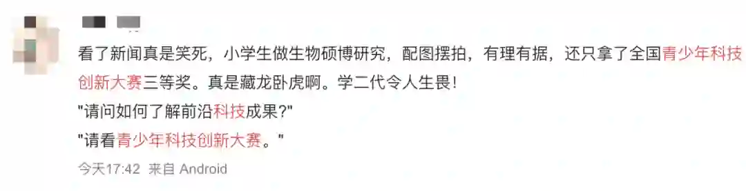 还有网友说,“请问如何了解前沿科技成果?”“请看「青少年科技创新大赛」。”