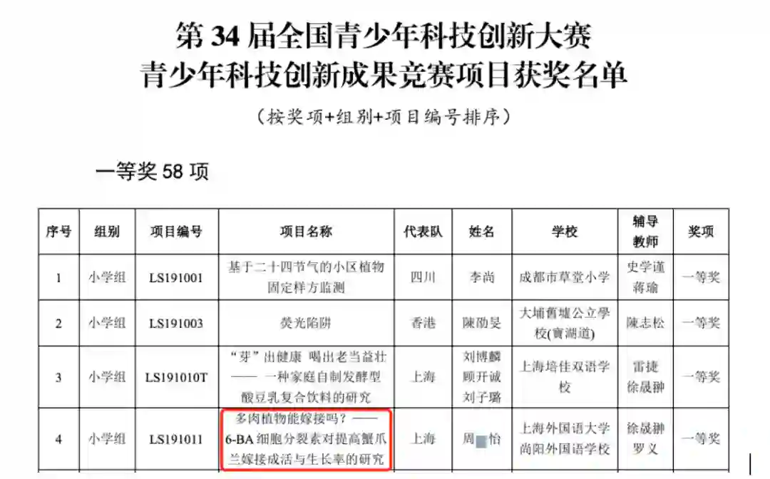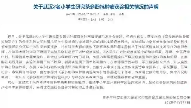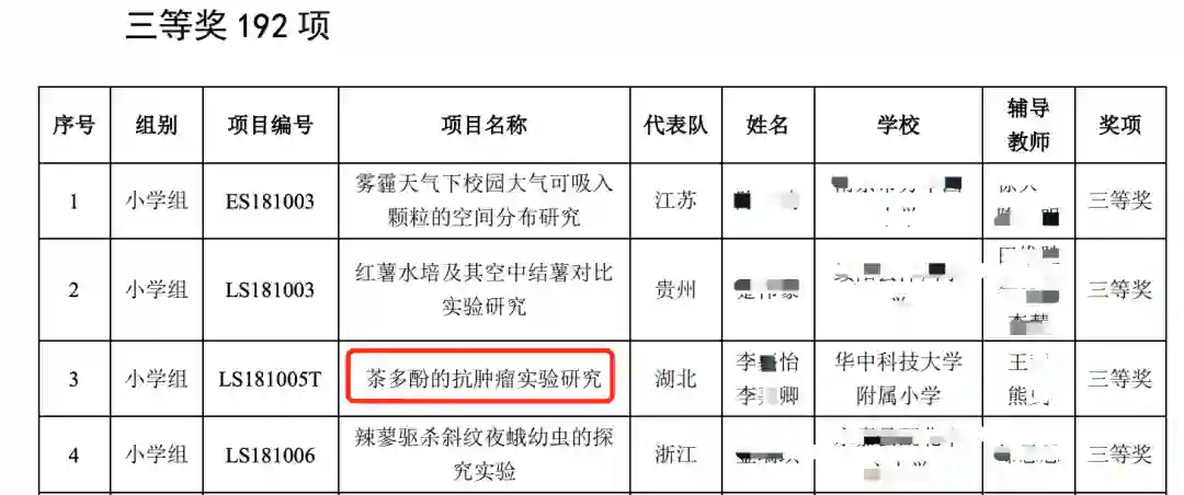 在他们之后,又有2名武汉小学生火了——她们,合作研究茶多酚抗肿瘤,在33届比赛中获小学组三等奖。