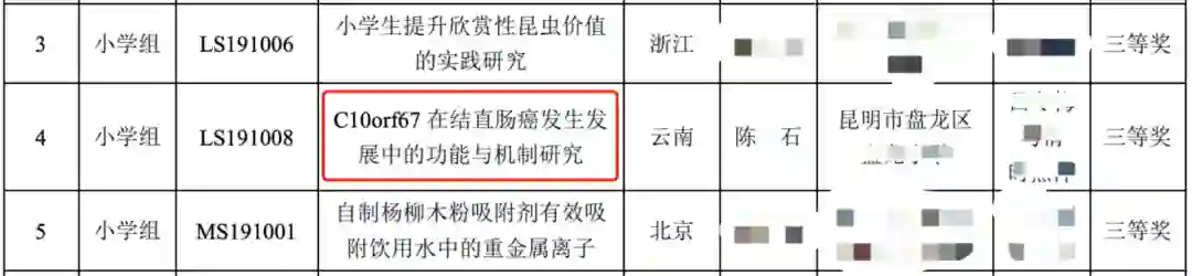 根据公开资料来看,这项研究的作者,是来自昆明市盘龙区一所小学的学生,陈某石。