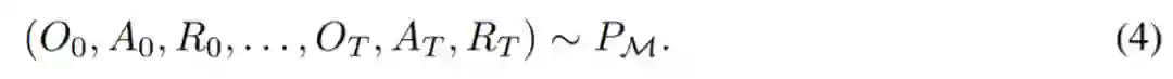 其中∆(A)表示动作空间 A 上的概率分布空间。公式 (3) 表明,该算法可以在环境中展开,以生成观察、奖励和动作序列。为了简单起见,该研究将算法用 P 表示,将环境(即任务)用的学习历史都是由算法