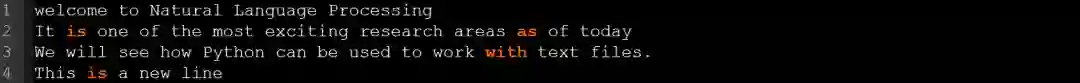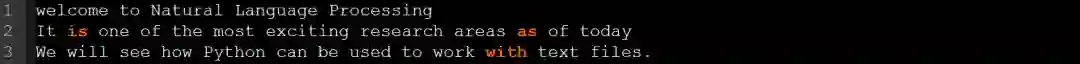 在多数情况下,这会使文本更容易相处。例如,我们现在可以轻松遍历每一行并打印行中的第一个单词。