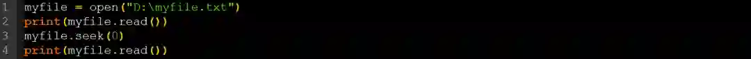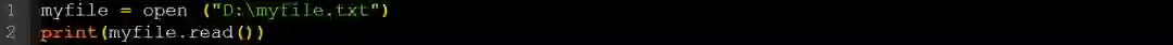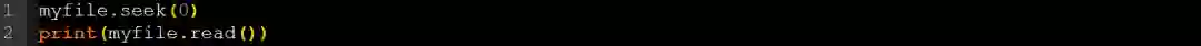 现在,让我们读一下该文件的内容。为此,你需要在myfile变量上调用read()函数,如下所示: