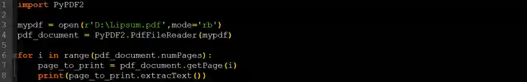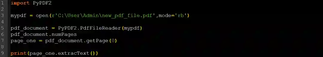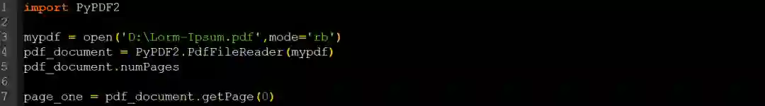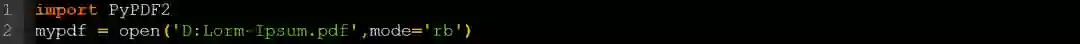 要阅读PDF文档,首先,我们必须要像其他普通文件一样打开它。使用以下脚本: