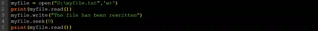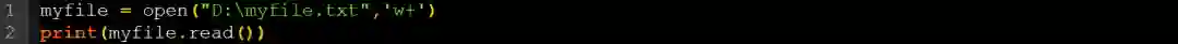 在输出中,由于使用w+模式打开文件,因此屏幕上不会显示任何内容,文件的所有内容都已被删除。你可以附加文字来避免这种情况,我也会在下面提到。