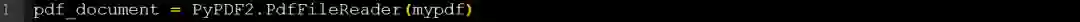 打开文件后,我们需要调用PyPDF2库中的PdfFileReader()函数,如下所示: