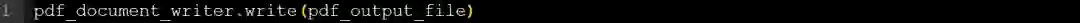 最后,我们需要在PDF编写对象上调用write()方法并将新创建的文件传递给它。
