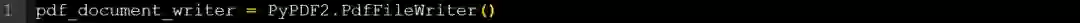 上面的脚本创建了一个可用于将内容写入PDF文件的对象。首先,我们将向这个对象添加一个页面,并将我们从另一个PDF中检索到的页面传递给它。