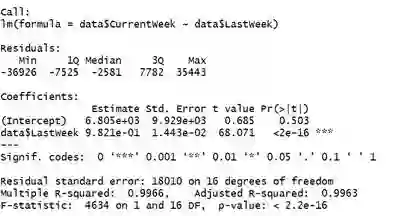 > linear <- lm(data$CurrentWeek~data$LastWeek)
