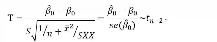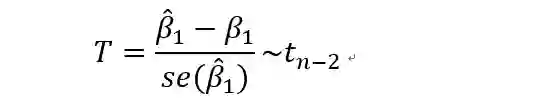 回想一下t分布的定义,可以知道这里是服从自由度为n-2的t分布的。自由度的计算公式是样本个数减去带估计参数的个数。