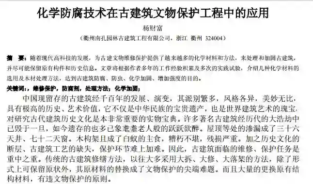 1、杭州市第二中学梁同学与方文斌老师的《化学防腐技术与古建筑保护》(2017年2月发表于《建筑与文化》)