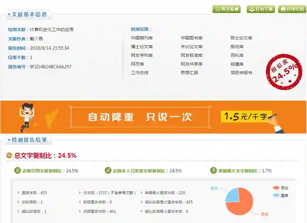 ►PaperYY:标红为学生论文与已发表文献相似部分