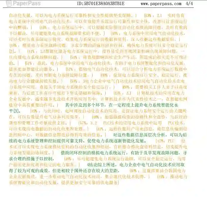 ►PaperPass:标黄部分为学生论文与已发表文献相似部分