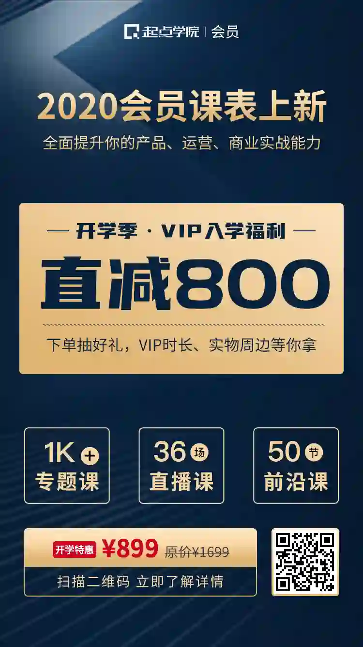VIP可免费学习起点学院1000+门线上录播课,这些精选课程覆盖了产品、运营、营销增长等领域的基础与前沿实战内容,每年持续更新200+新课,帮你全面提升实战能力。