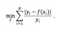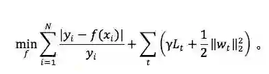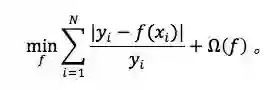 考虑到用户对误差的敏感程度更多的和相对值有关,滴滴将 MAPE(mean absolute percentage error)选择为目标函数,对应于 MAPE 的优化问题为: