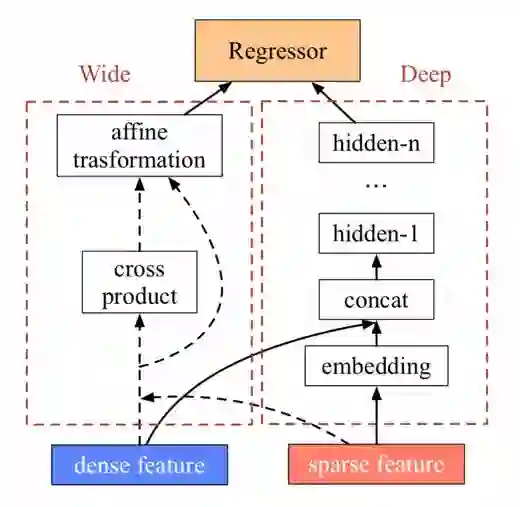 在 global model 部分滴滴考虑了近年来在推荐系统领域受到关注的 Wide & Deep 模型,以保证所有模块都可以进行端到端的训练。其 Wide 分支其实和 FM 是源出一脉的,对特征进行二阶交叉,对历史数据拥有一定的记忆功能。而它的 Deep 分支就是传统的多层感知机结构,有较好的泛化能力。两个分支强强联手,能互取所长。