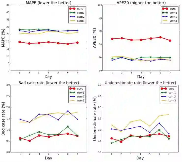 滴滴也进行了为期一周的线上评估,从曲线可以看到,其模型在线上实际系统中也有着领先的性能。