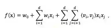 而 FM 模型的核心思路是将特征交互的权重矩阵进行分解,表达为向量内积的形式,以此来减少参数数量。二阶 FM 的计算为