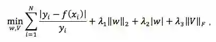 其中 d 是特征维度,通常在千万级别甚至更高。而参数向量的维度 m 相对很小,通常在几十的量级便能达到较好的预测精度。FM 同样可以对 ETA 进行回归建模,加上一些正则项,就得到了优化目标