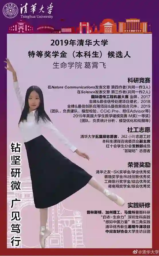 清华生命学院葛霄飞,前三年推研成绩年级第五,其中大一下、大二下和大三所有文化课程均是A/A-。在高二保送清华后,葛霄飞就开始在科研大牛施一公教授的实验室从事多囊肾病研究。